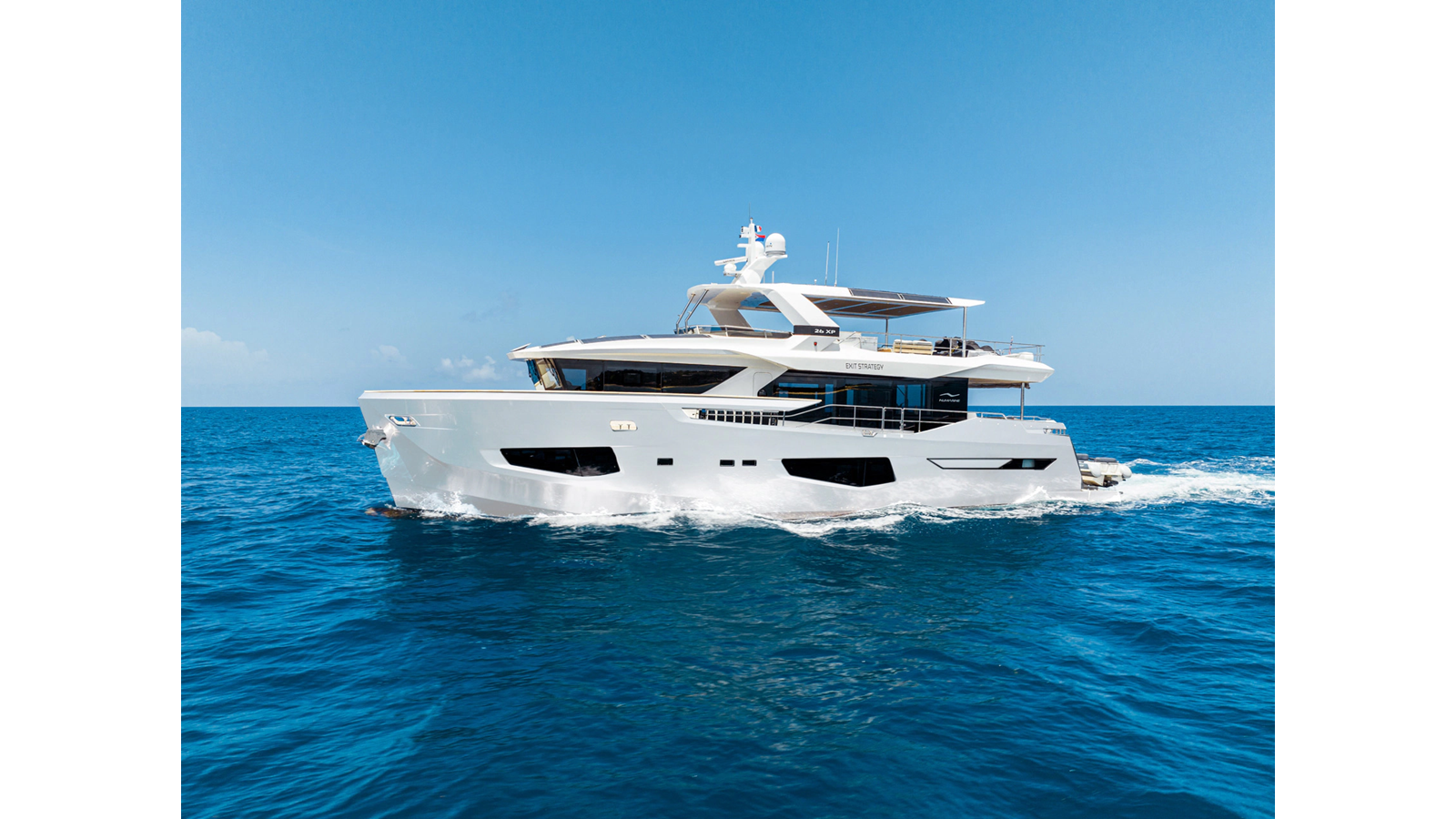 The 2023 Numarine 26XP EXIT STRATEGY is a purpose-built expedition-style yacht accommodating up to eight guests in four spacious staterooms, with additional accommodations for four crew in two dedicated cabins.